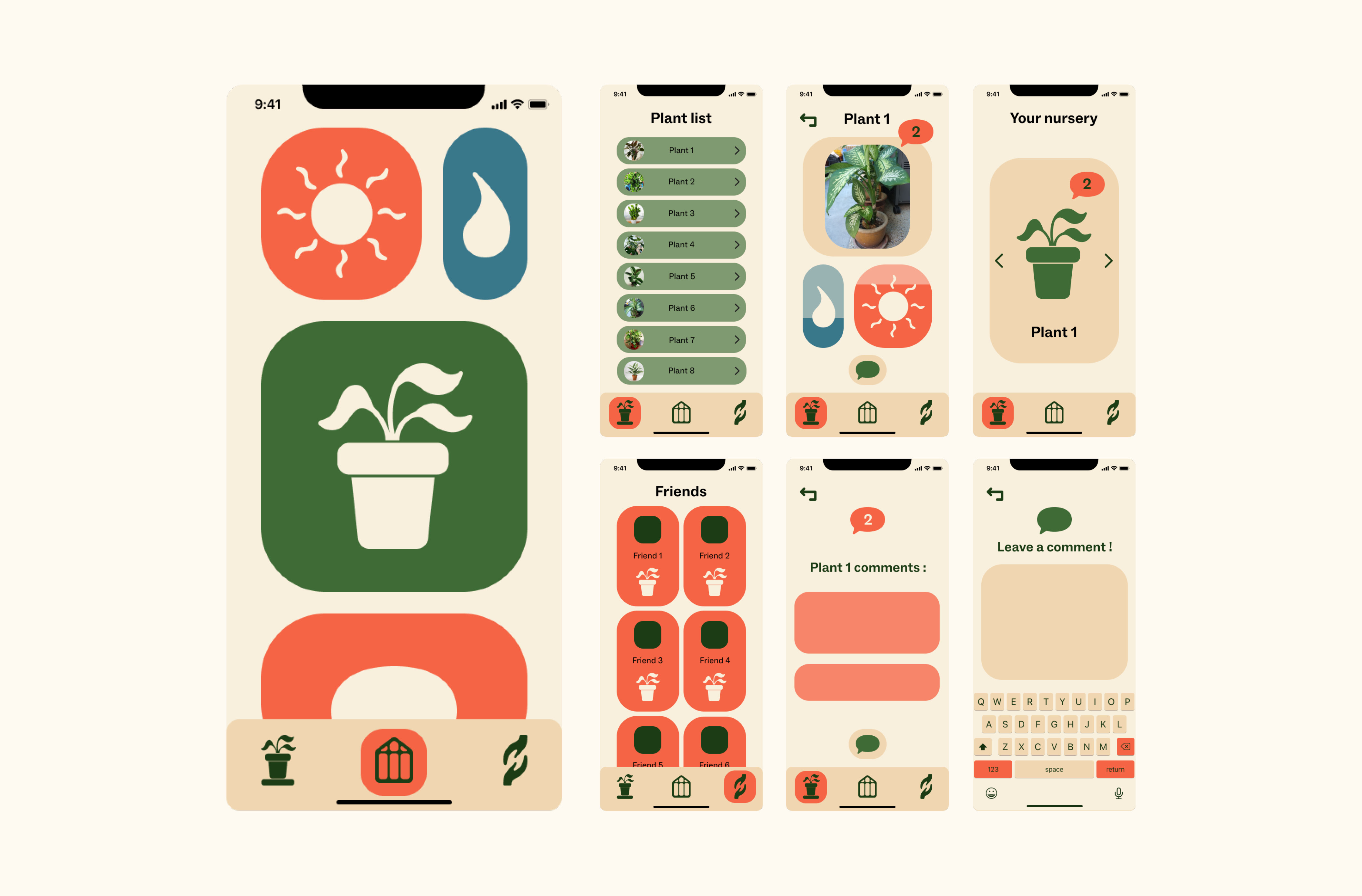 The app relies on a circle of trust: friends can warn others to water their plants if they have not done so in a while, and give each other advice. The design is warm and friendly to reflect this collaborative atmosphere.